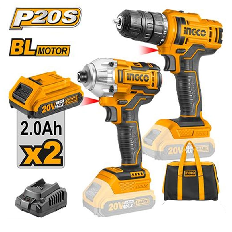 KIT DE PERCEUSE VISSEUSE SANS FIL 20V + BOULONNEUSE A CHOCS SANS FIL INGCO REF CKLI2016